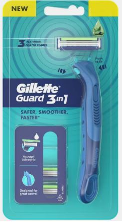 NEW GILLETTE GUARD 3 IN 1 3 PLATINUM COATED BLADES SAFER SMOOTHER FASTER RAZOR PCS 1(PR-160163)